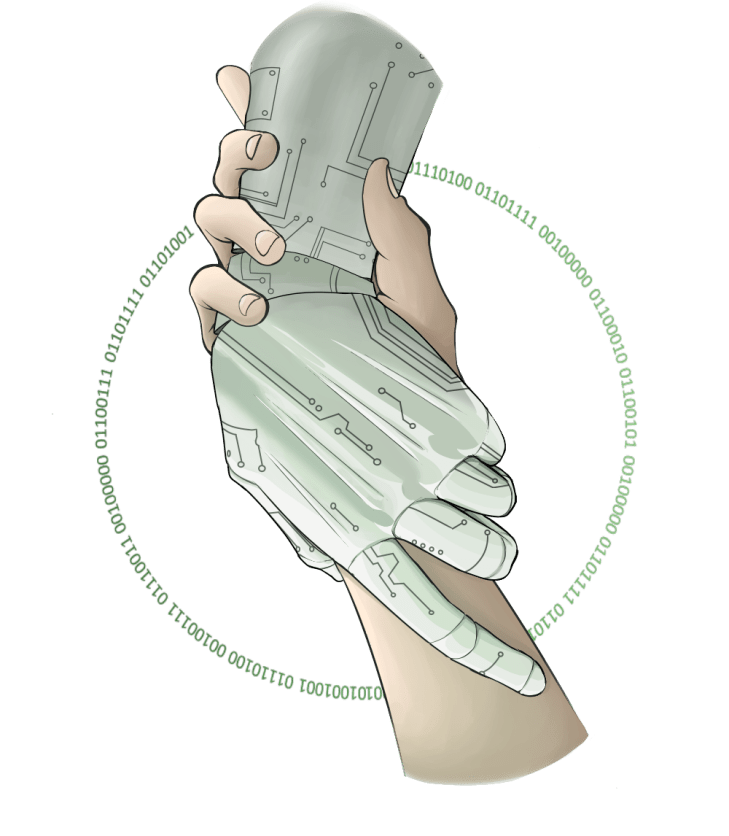Humans and computers together as one.